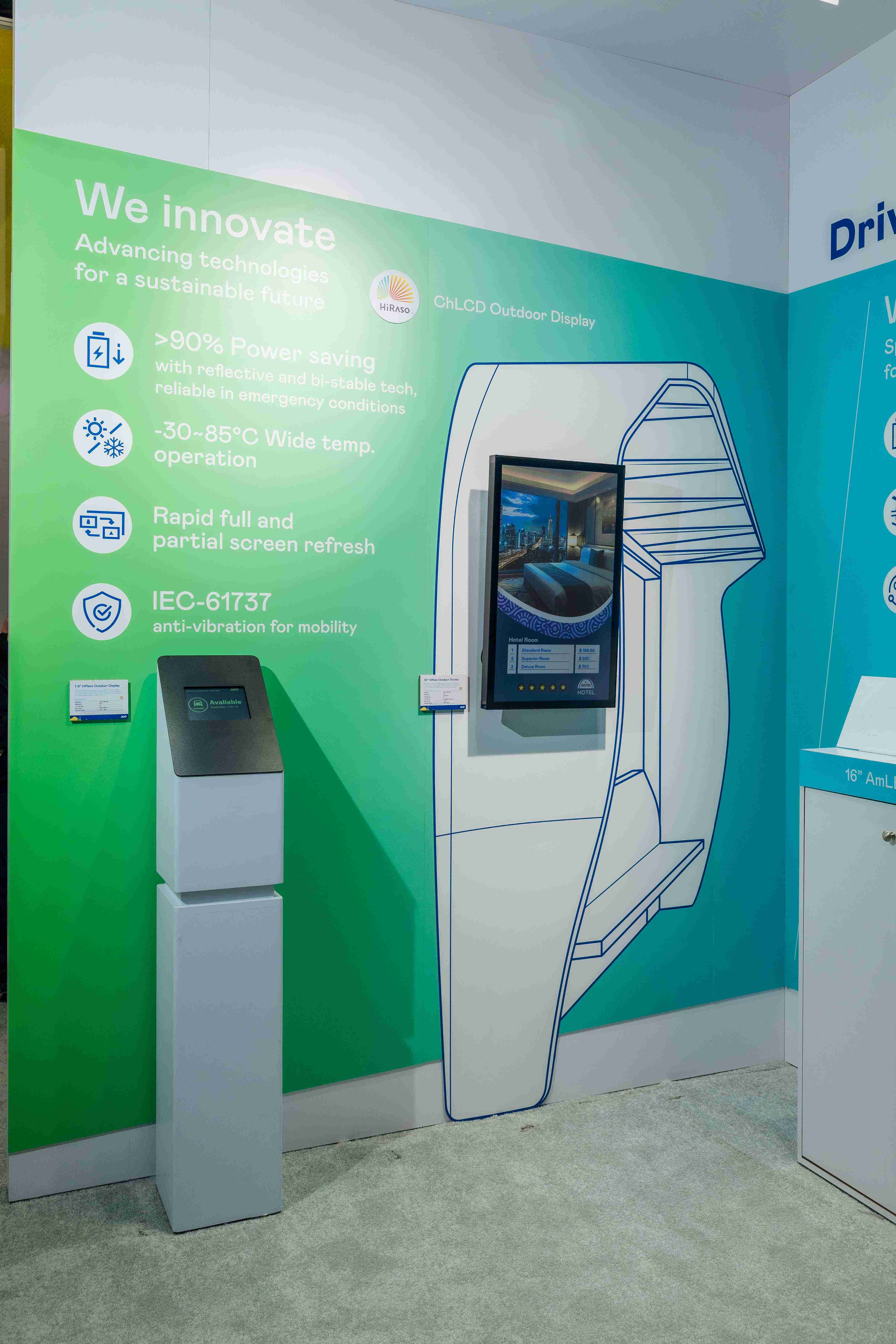 HiRaso胆固醇液晶显示器运用反射环境光线的方式,,,,呈现影像显示时零耗能的环保省电诉求,,,,光线愈强愈能呈现绝佳的色彩饱和度及显示效果,,,,同时在摄氏-30度至85度间宽温的使用优势,,,为户外电子看板的新首选。。。