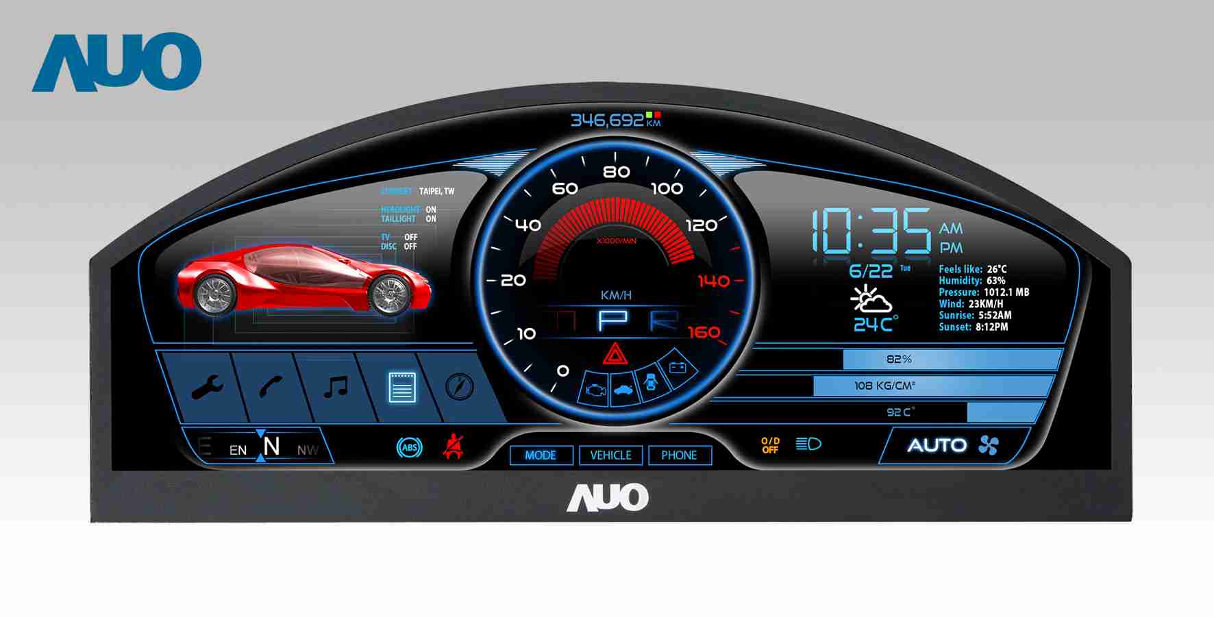 尊龙集团 12.3吋超高解析异型切割车用面板,,,,拥有流线外观及精细画质