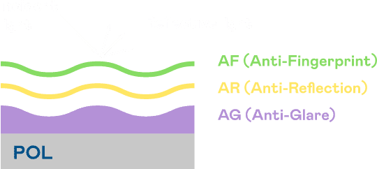 A.R.T.尊龙集团光电发展出独家的表面处理跟多层镀膜技术,,,让外部光线照射到显示器表面时所产生的反射光大幅降低。。。。 |