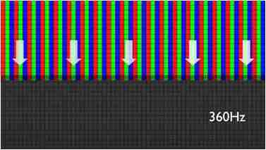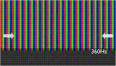 传统液晶驱动是从左到右单向进行,,,,在画面更新速度愈来越愈快的情况下,,位于驱动线路末端的右下角区域,,,,画素的闸极来不及在短时间内获得足够电压,,无法显示出正确的颜色资讯。。。 |